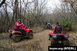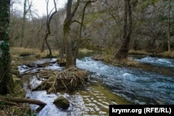 Впрочем, непосредственно склоны вдоль Черной реки квадроциклисты все же обходили, что нас, безусловно, не могло не радовать. Поэтому можно было спокойно наслаждаться видами, в частности, белоснежными от цветущих подснежников лужайками и берегами стремительной Чоргуни. Этой ранней весной она полноводна, как никогда. Поэтому очень быстро, даже рекордно быстро, как утверждают севастопольские власти, заполняет в верховье «свое» водохранилище. Как недавно сообщил ТАСС по итогам заседания городской комиссии по ликвидации чрезвычайных ситуаций, существует даже угроза прорыва дамбы Чорнореченского водохранилища, которое обеспечивает водой 70% жителей Севастополя.