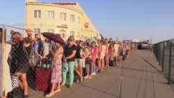 Очередь на украинском КПП «Чаплынка». Контролируемый Россией пункт «Армянск», по-прежнему, пропускает автомобили только на въезд.