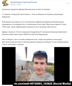 Ефрейтор из Удмуртии Дамир Бекмансуров похоронен 17 апреля.