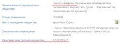 Самым дорогим в списке крымских судов, выставленных на продажу, является генгруз «Таврия». Его начальная стоимость составляет 8,5 миллионов рублей.
