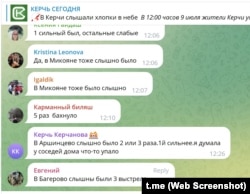 В своих комментариях жители Керчи начали писать, где именно они находились, когда услышали звуки взрывов. Эта импровизированная перекличка показала, что звуки были хорошо слышны в разных районах города, отдаленных друг от друга, а также за городом. Было также много упоминаний мест, приближенных к морю: Осовины, Юркино, пляж «Змеинка».