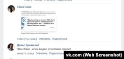 «Что сбили, если отчетливо был виден прилет?» – пишет Денис Крымский. Этот комментарий продержался всего несколько секунд, после чего был удален администраторами группы.