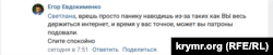 Есть и такие, кто явно пытается погасить возникающую панику и не дать распространиться информации. Так, пользователь под ником Егор Евдокименко пишет: «Светлана, врешь просто панику наводишь».