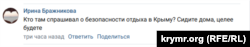 «Кто там спрашивал о безопасности отдыха в Крыму? Сидите дома, целее будете», – советует Ирина Бражникова.