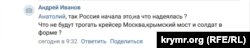 а что надеялась? Что не будут трогать крейсер «Москва», крымский мост и солдат в форме?», – мудро замечает Андрей Иванов.