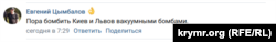 «Пора бомбить Киев и Львов вакуумными бомбами», – воинствует Евгений Цымбалов.