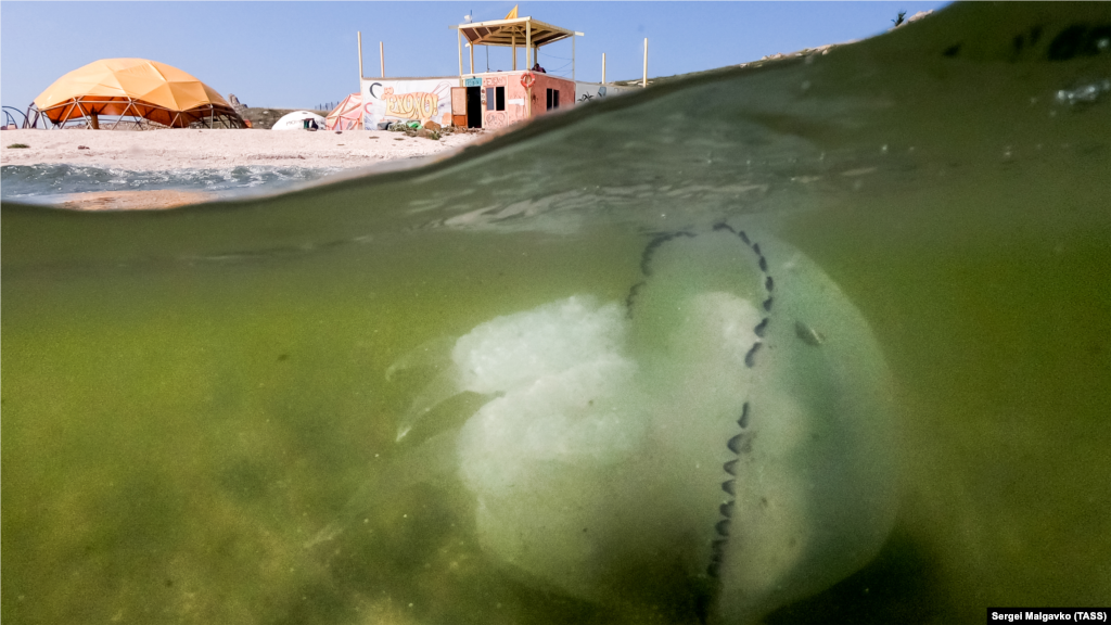 Жалят и оставляют следы: тысячи медуз у побережья Азовского моря в Крыму (фотогалерея)