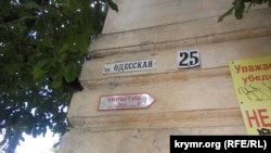 В Севастополе на старых домах развесили информацию об укрытиях, сообщает корреспондент Крым.Реалии.