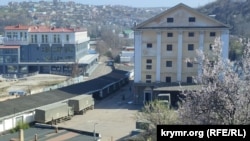 Корреспондент Крым.Реалии наблюдал там два «Камаза» под погрузкой и еще два ожидающих в очереди.