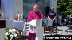 На церемонии выступил заместитель российского правительства Севастополя Юрий Кривов. После него к общине обратился представитель Папы Римского в Крыму, епископ Яцек Пыль.