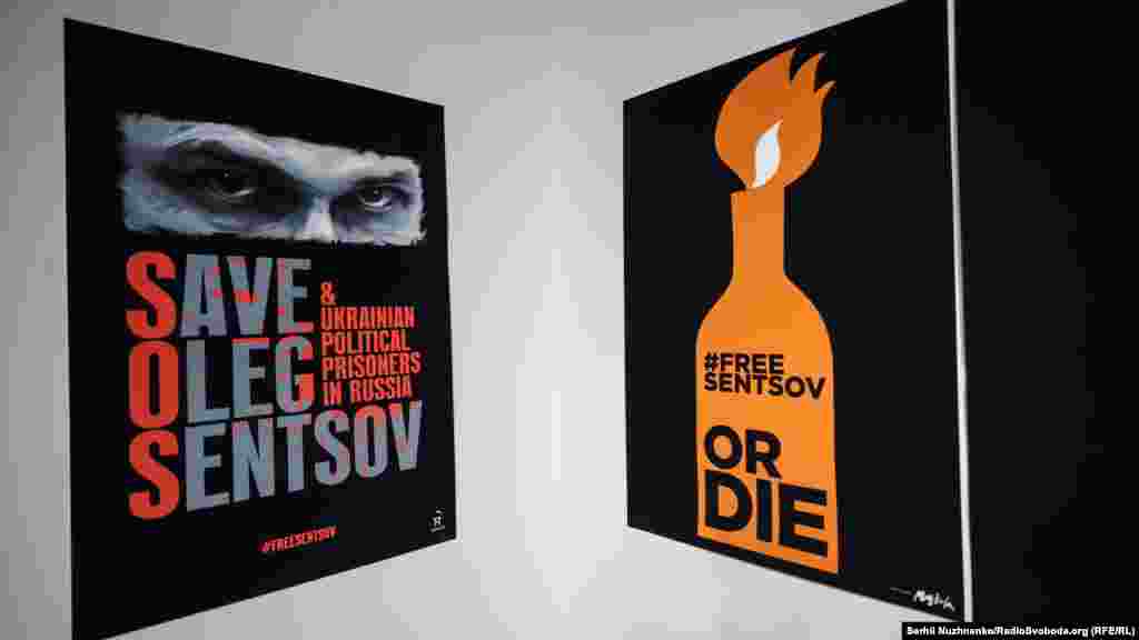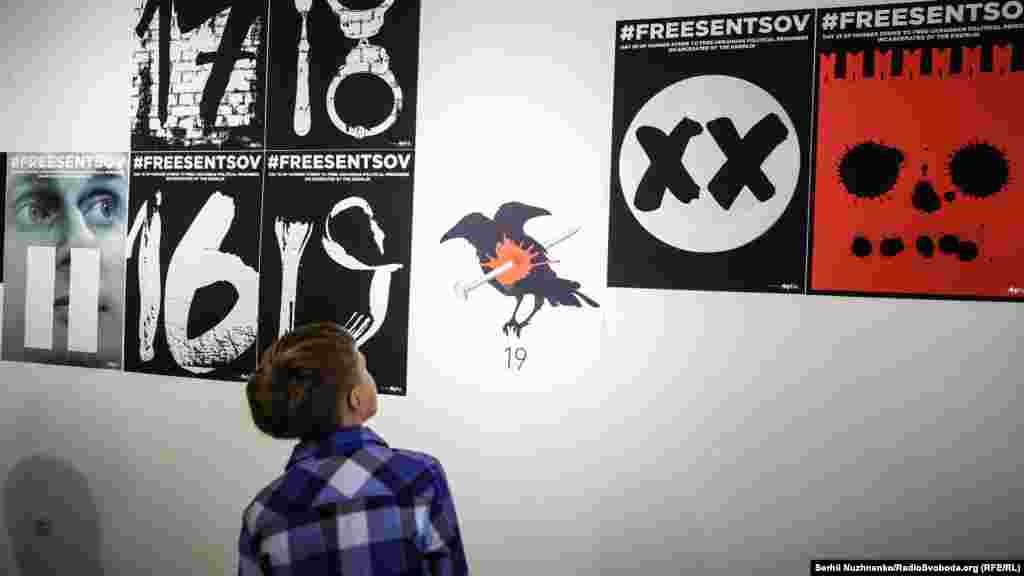 «Эта экспозиция – своеобразная антология художественных материалов, которые были созданы в поддержку Олега Сенцова. Это плакаты, постеры, картины, видео, инсталляции – своеобразный итог этих трех месяцев голодовки Сенцова», – рассказал о мероприятии кинорежиссер, один из представителей украинского творческого объединения Babylon13 Владимир Тихий.