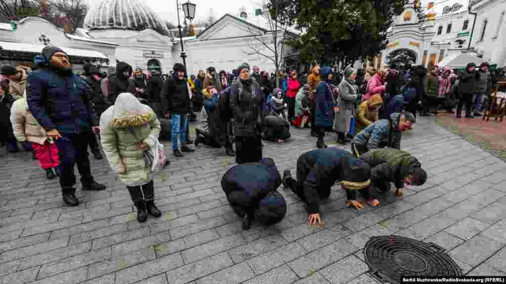 Последнее богослужение представители УПЦ провели 29 марта в Крестовоздвиженской церкви на нижней территории Киево-Печерской лавры. Церковную службу возглавлял архимандрит Лавры митрополит Павел (Лебедь). На службу собралось несколько сотен верующих, стоявших в храме и на улице. На территории Лавры было много украинских и зарубежных журналистов.